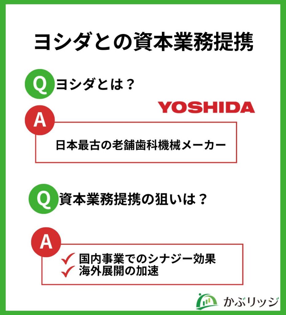 同社は2025年6月、日本最古の歯科機械メーカーである株式会社ヨシダと資本業務提携を締結しました。