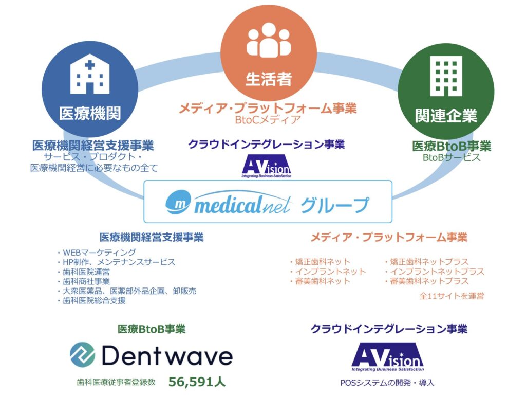 同社は歯科医療プラットフォームを中心に、医療機関の経営支援から患者向けの情報提供まで幅広く展開。