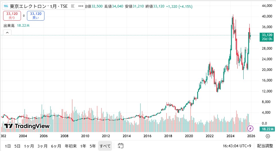 | 東京エレクトロン(8035) | 電気機器 | 37,910円 | 東証プライム | 4,751,700 |