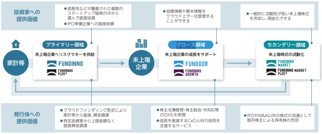 FUNDINNOは、 未上場企業エクイティプラットフォーム事業を運営する企業です。