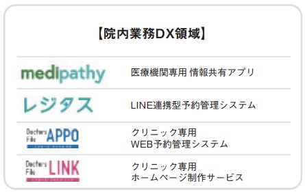 院内業務DX領域では、クリニックの業務効率化を支援するデジタルツールを展開しています。