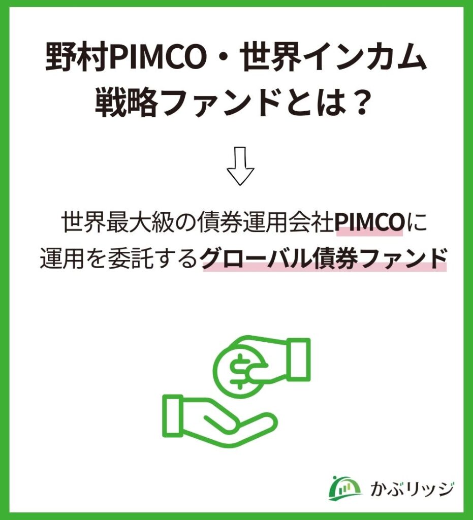 野村PIMCO世界インカム戦略ファンドは、野村アセットマネジメントが設定し、世界最大級の債券運用会社PIMCOに運用を委託するグローバル債券ファンドです。