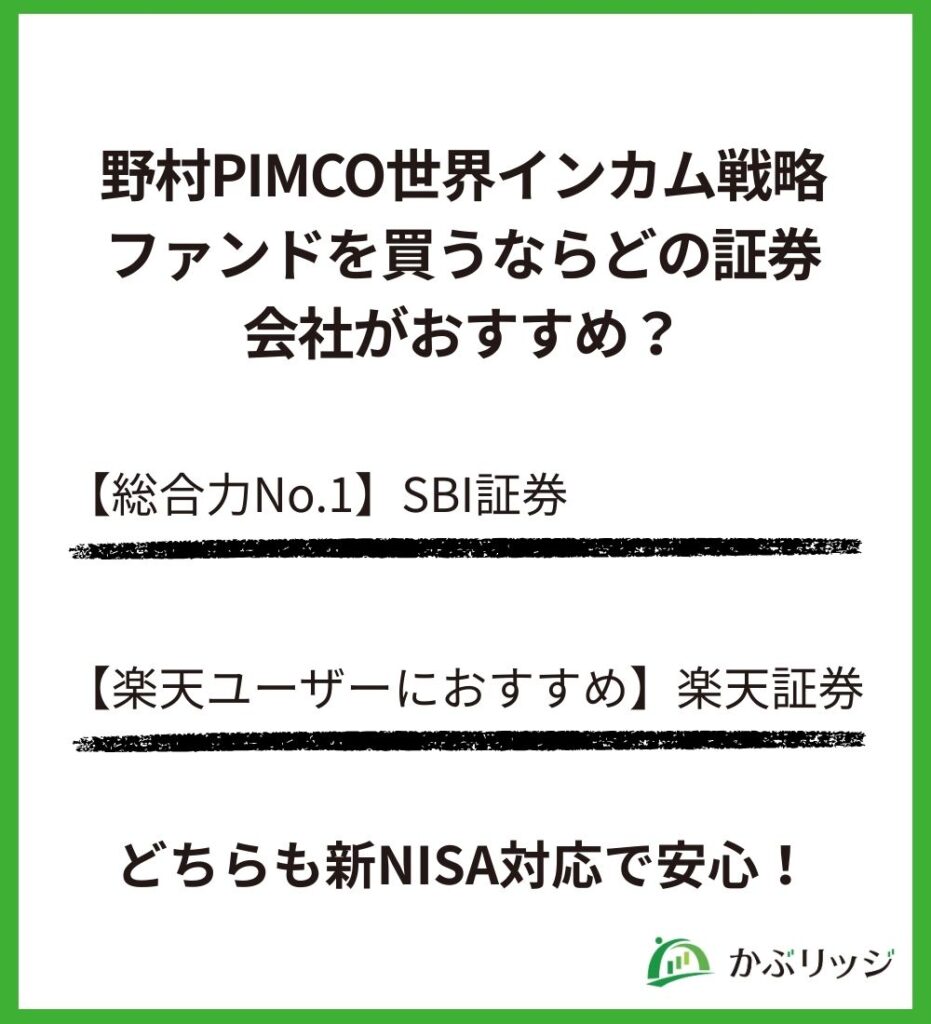 野村PIMCO世界インカム戦略ファンドは、購入手数料がかかるため、手数料が無料の証券会社かつ、クレカ積立の還元率やポイントの使いやすさ、普段使いのサービスとの相性で決めるのがおすすめですよ。