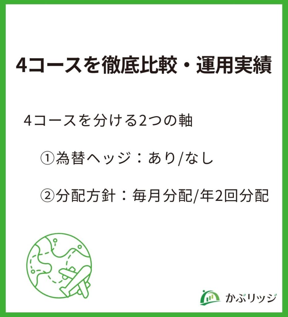 ヘッジ有無と分配頻度の組み合わせで4コースに分かれているんだね!