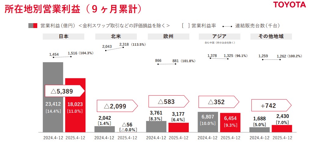 また、地域ごとの営業利益は以下のようになっています。
