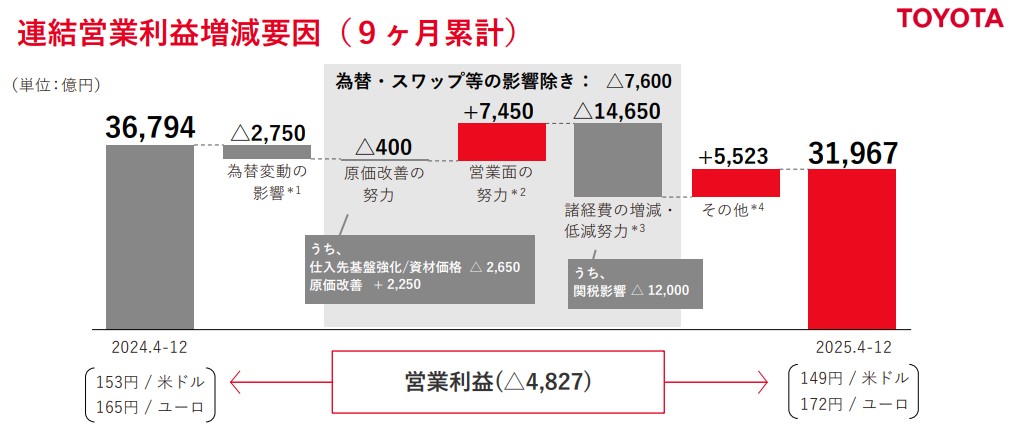 営業利益は前年同期比13.1%減の3兆1,967億円となりました。